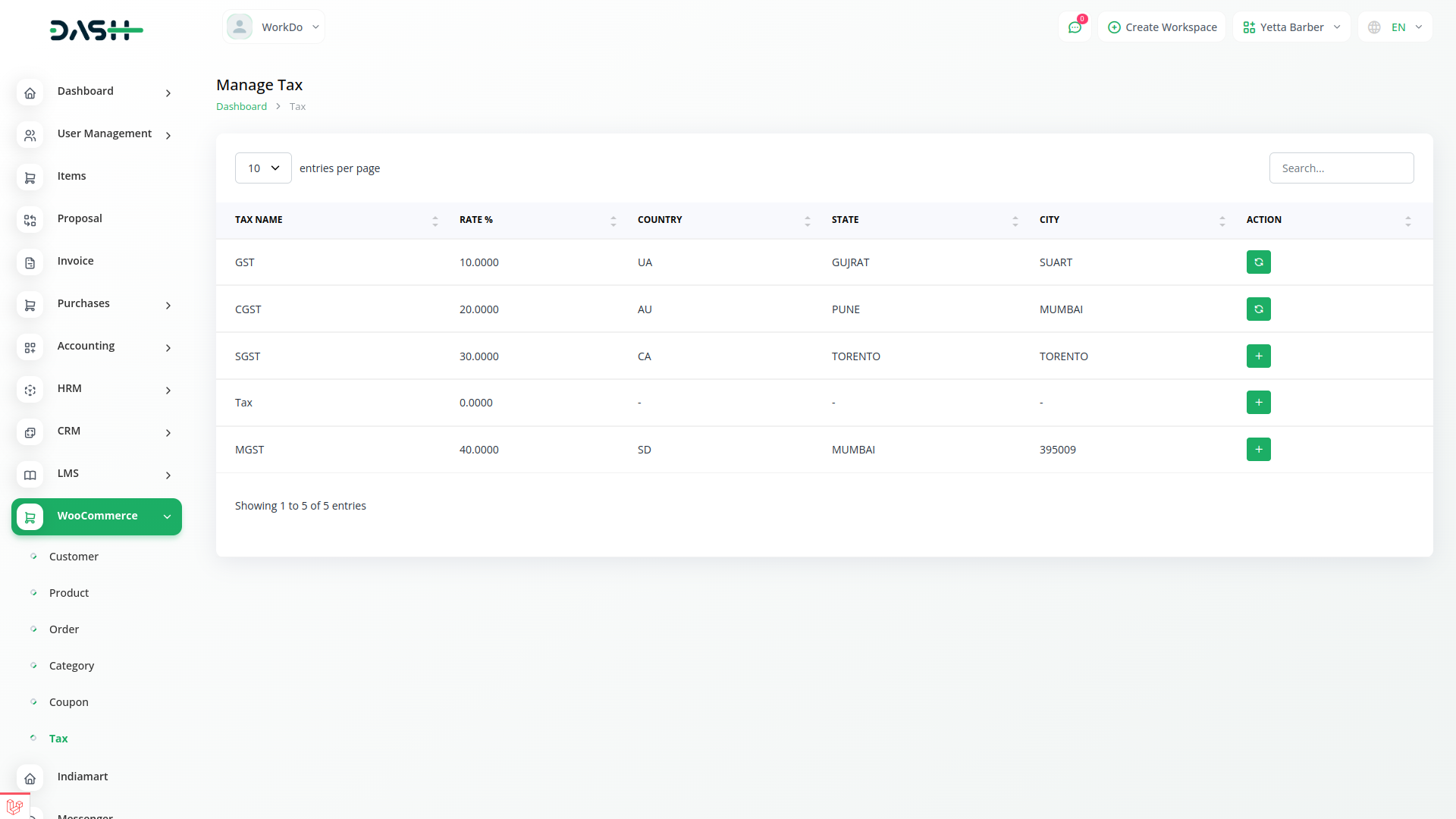 Integrate and manage your store`s products and inventory with WooCommerce using WooCommerce. Simplify product and coupon management while enhancing customer interactions for an optimized WooCommerce experience.You can also add your woocommerce products to dash saas by clicking on the button given beside the product.