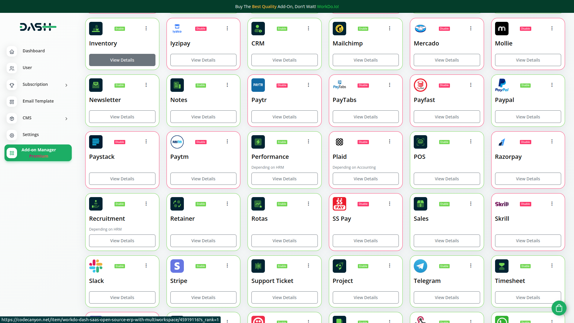 Access over Premium Add-ons for Accounting, HR, Payments, Leads, Communication, Management, and more, all in one place!