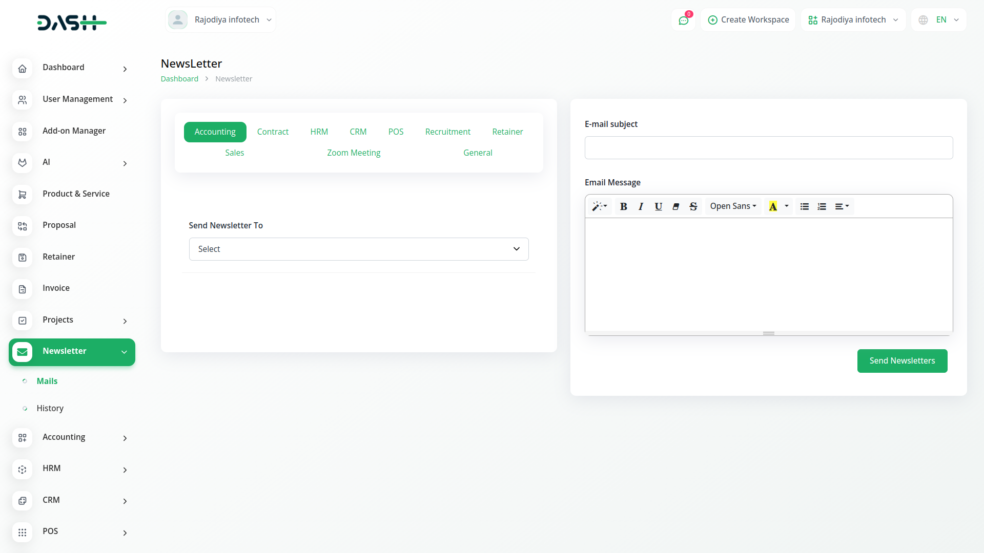 Newsletters provide a history of email statuses, allowing you to see if emails were successfully sent or if there were any issues.Using the history of the newsletter, you can also see how many people have sent the mails and to which time.