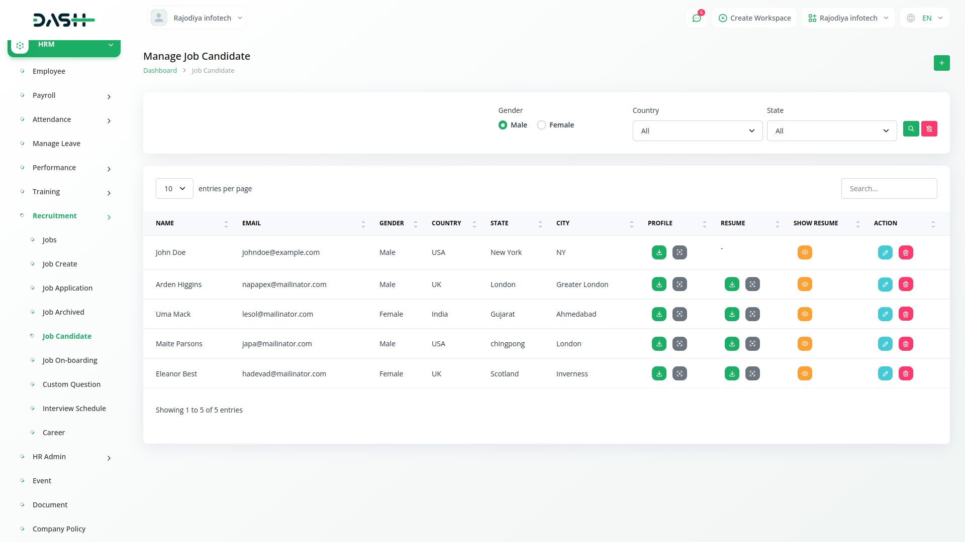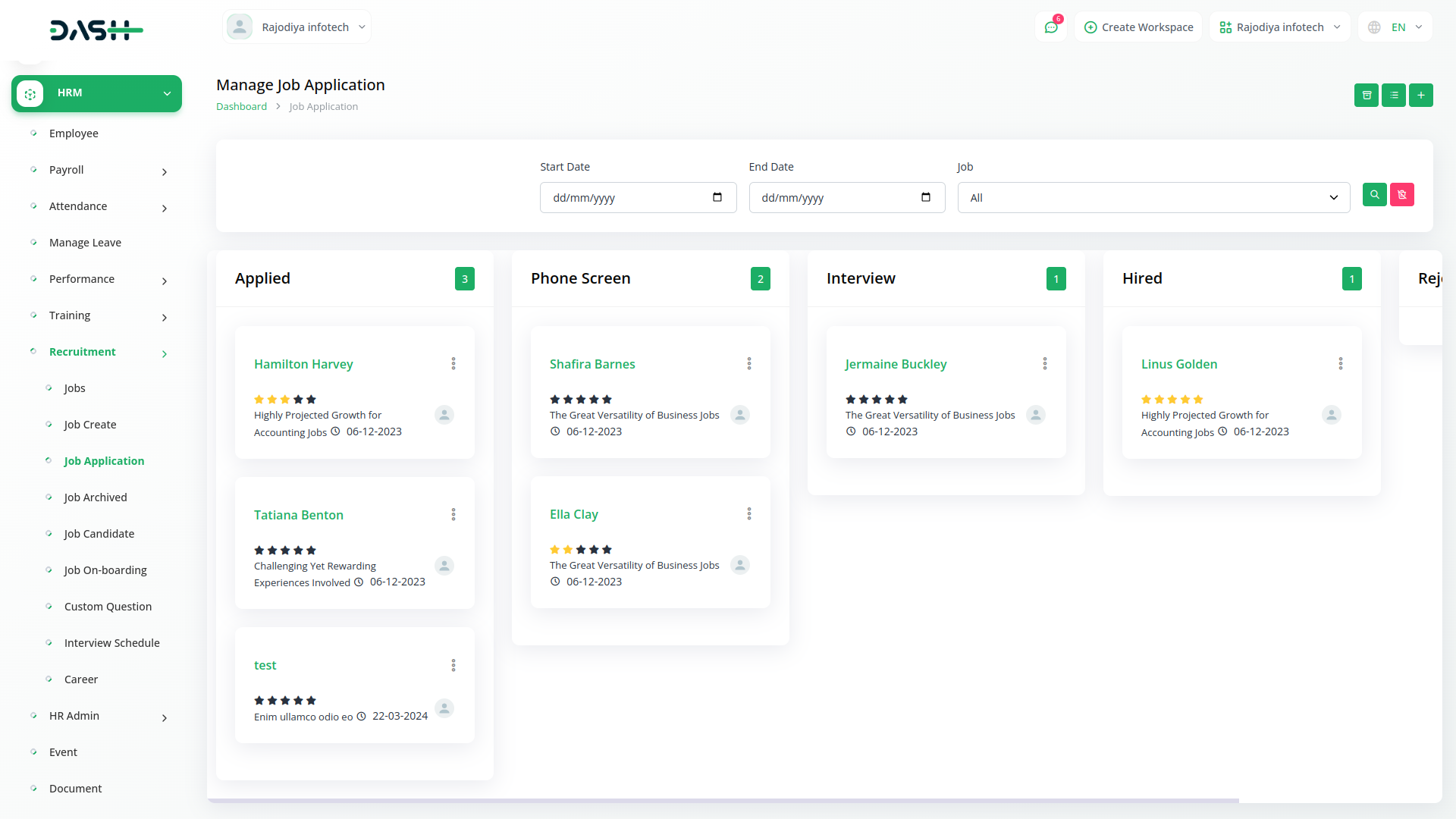 Efficiently managing incoming job applications is facilitated through the Candidate Management page. Here, users can review, filter, and respond to applications seamlessly. This centralized hub provides a clear overview of each candidates journey, from onboarding application. Robust filtering and sorting options allow users to prioritize candidates based on qualifications and suitability for the role.
