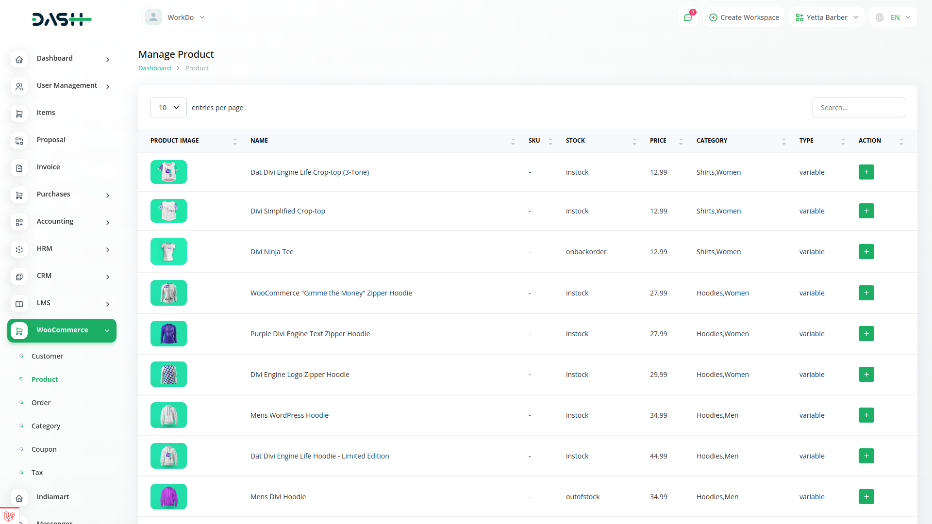 Integrate and manage your store`s products and inventory with WooCommerce using WooCommerce. Simplify product and coupon management while enhancing customer interactions for an optimized WooCommerce experience.You can also add your woocommerce products to dash saas by clicking on the button given beside the product.